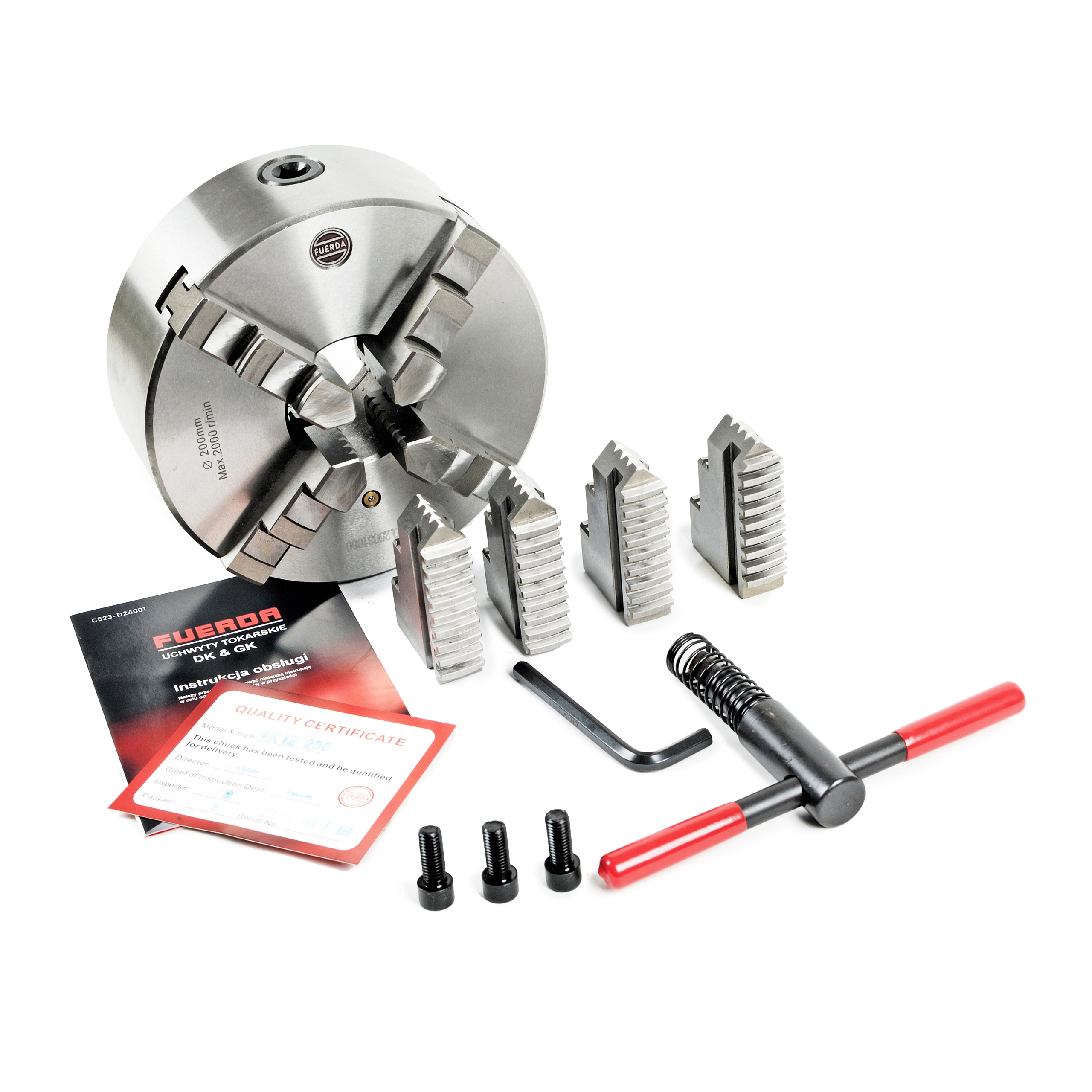 🔹 Uchwyt tokarski 4-szczękowy FUERDA 200 mm